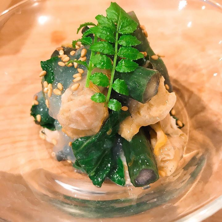 コウタイサイと白蛤の出汁ジュレ和え。筍の木の芽味噌など春っぽい前菜も増えてきました。まだまだ寒い日もありますが、少しずつ春を感じていただければ。本日もよろしくお願いします🤲